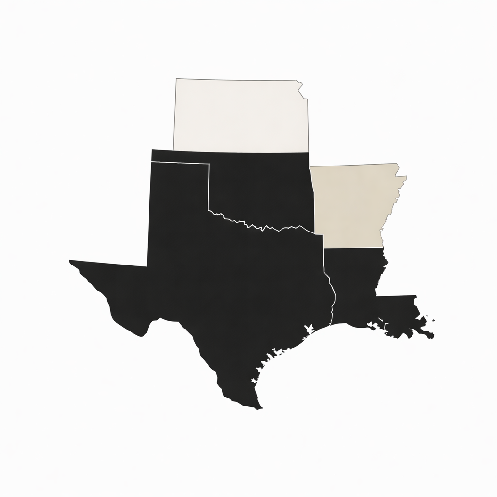 Responsive coverage across Texas, Oklahoma, Louisiana, Arkansas, and Kansas, with territory varying by represented line.